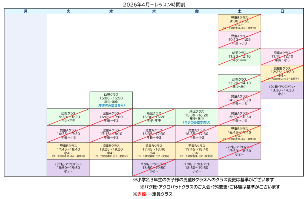 ■定員クラスのキャンセル待ちはございません(アクロバットクラスを除く)