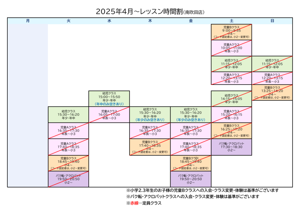 ※体験・入会・クラス変更は、体操クラブが定めた技の基準がございます