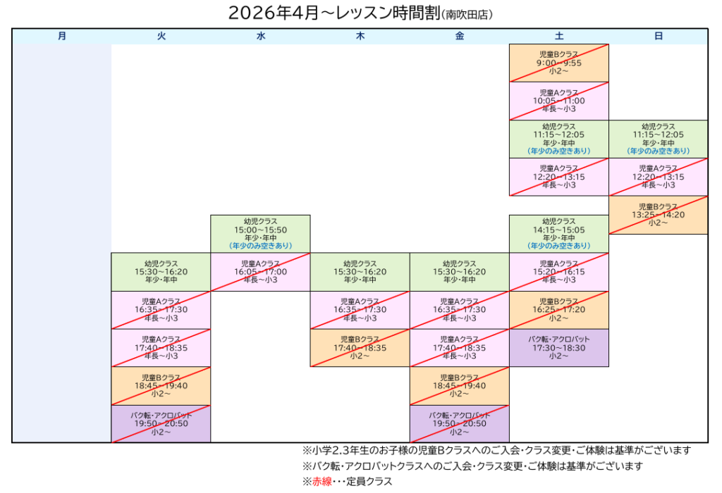 【南吹田店】2026年4月~入会・体験受付について