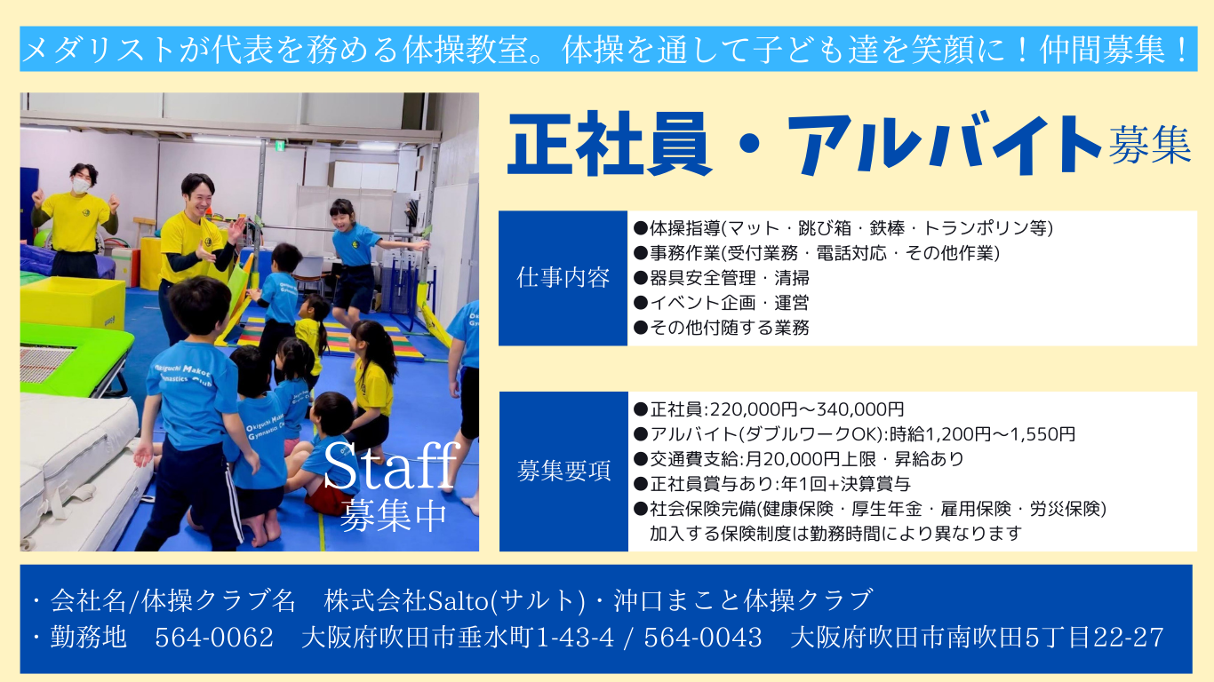 会社名/体操クラブ名:株式会社Salto(サルト)/ 沖口まこと体操クラブ